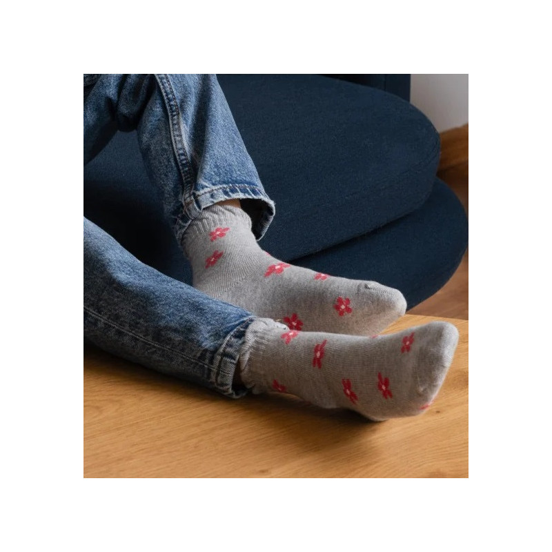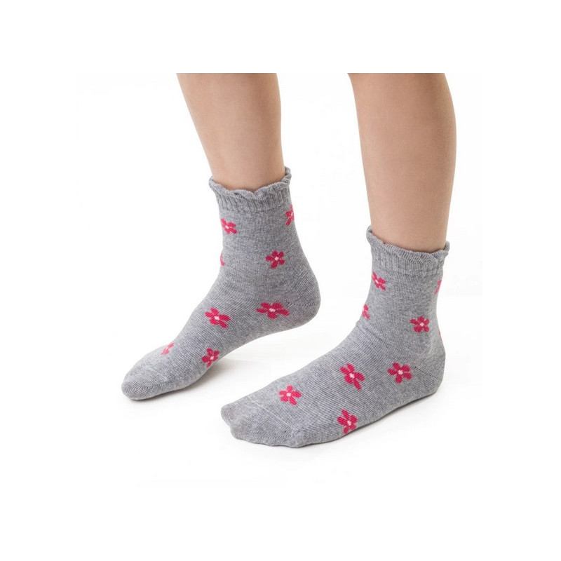 Veselé vzorované bavlněné ponožky pro dívky, mají pohodlný patent a řetízkovou špici. Vzor tvoří růžové kvítky.